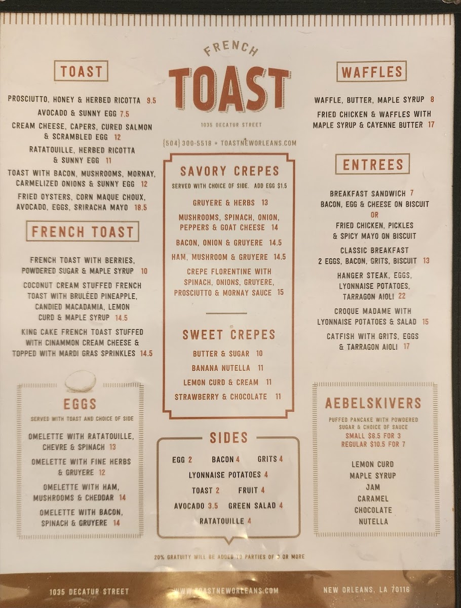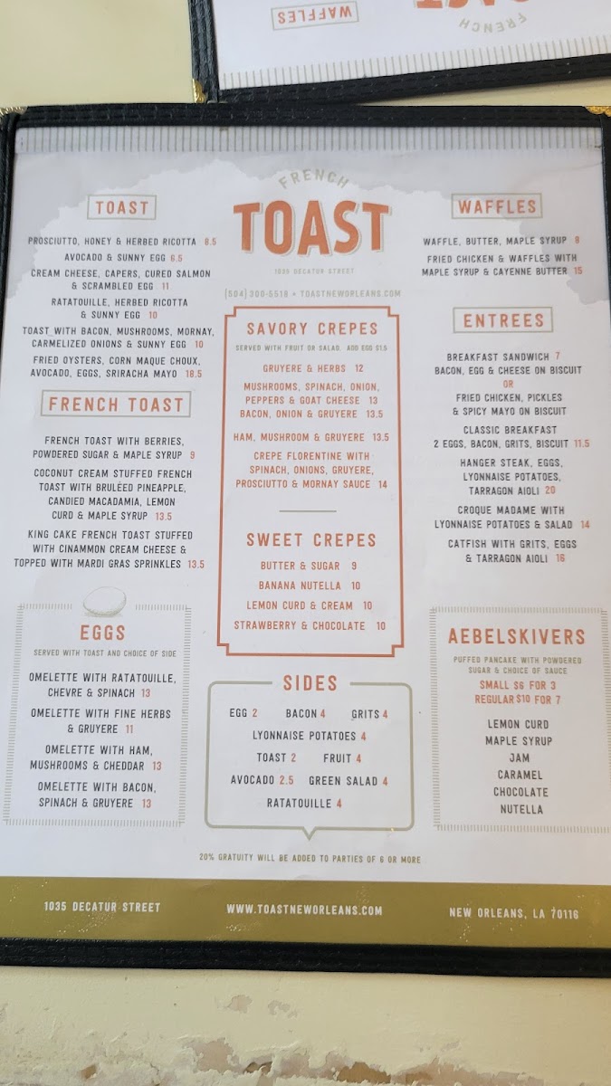 Welcome to French Toast, the culinary gem nestled in the heart of New Orleans at 1035 Decatur St. Known for its vibrant ambiance and friendly service, this eatery offers a delightful menu that captures the essence of brunch culture. From the moment you step in, you’re enveloped by the lively atmosphere and laughter from the kitchen staff.